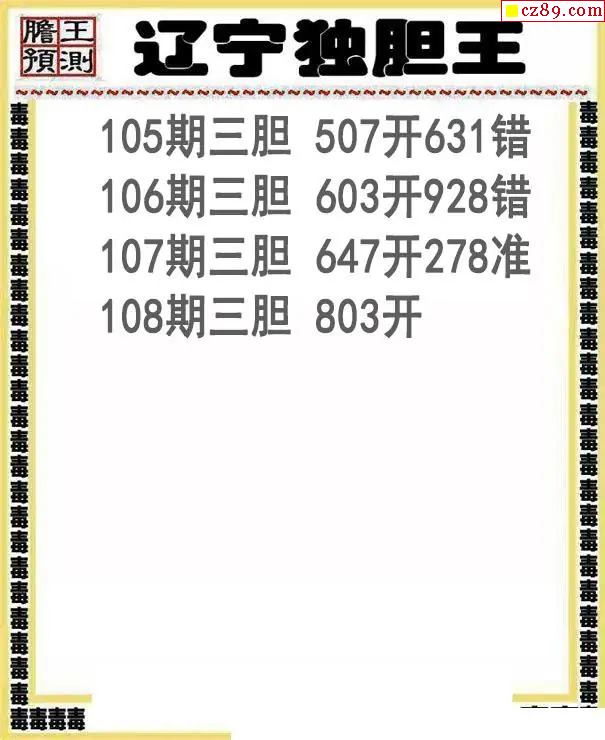 辽宁独胆王2026108期3d图谜