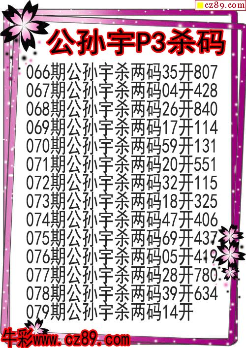 26年079期公孙宇P3杀码图