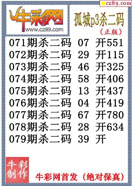孤城杀码079期体彩P3图谜(原创)