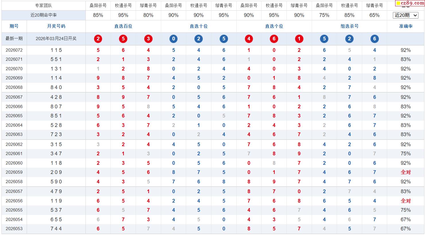 26年073期彩宝贝专家体彩P3杀号定码图表